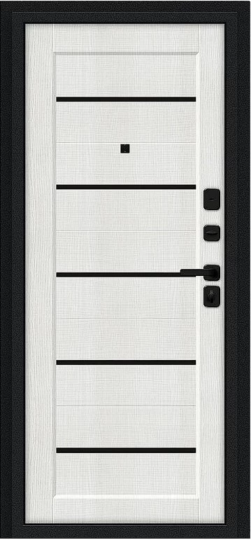 Дверь Браво Борн/SBlack Букле черное/Bianco Melinga среднего ценового диапазона. Стоит дверь 27 000 руб. и это отличное соотношение цены и качества. Модель подойдет для установки, например в новостройку. Прослужит долго и будет надежной защитой вашей квартиры или дома.